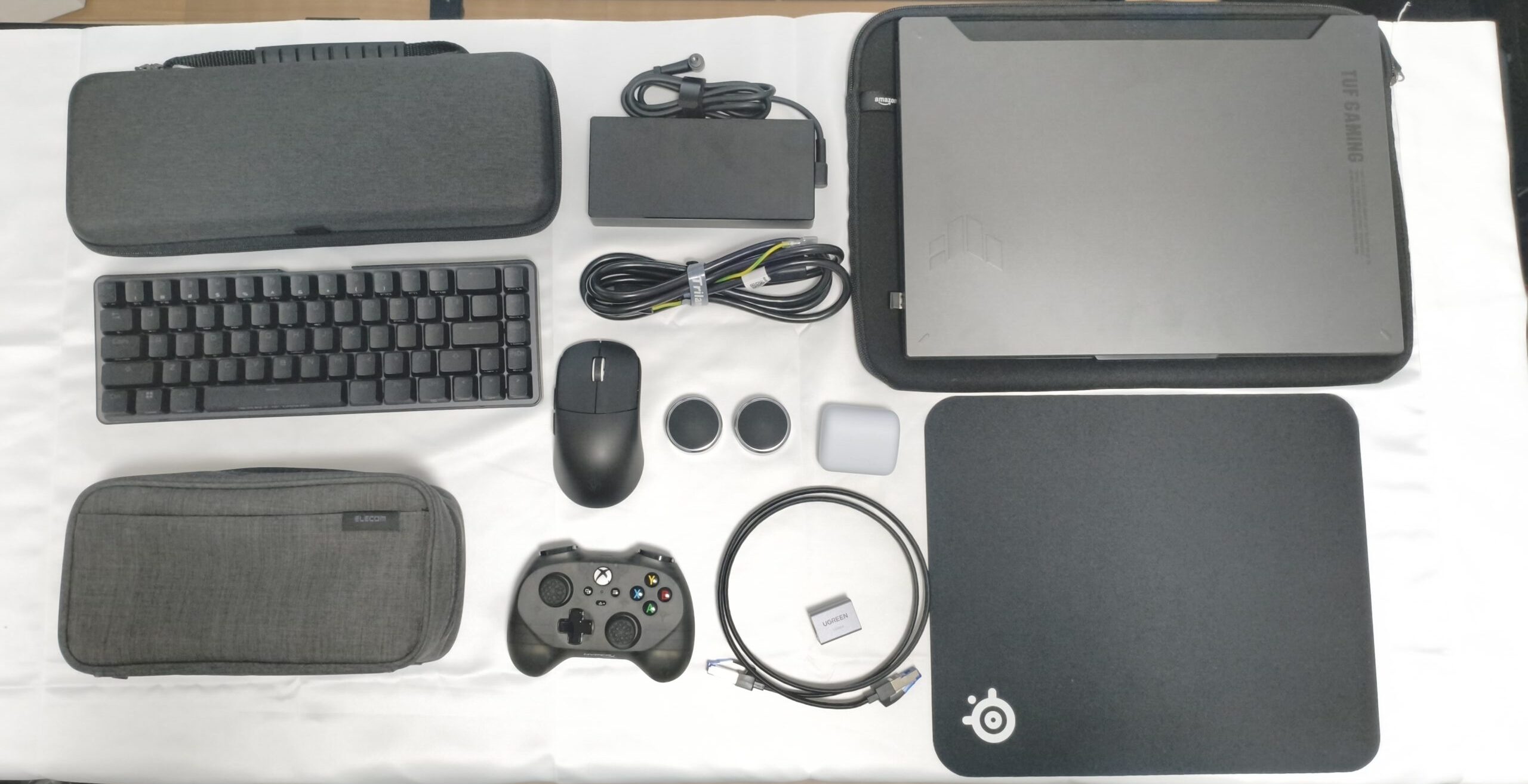 外出先でも快適にゲームを楽しめるよう、コンパクトで持ち運びやすい機材を中心に揃えています。